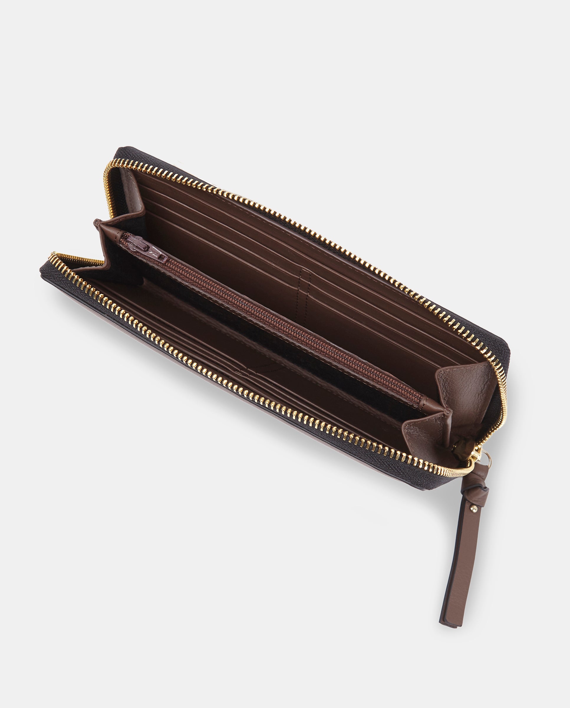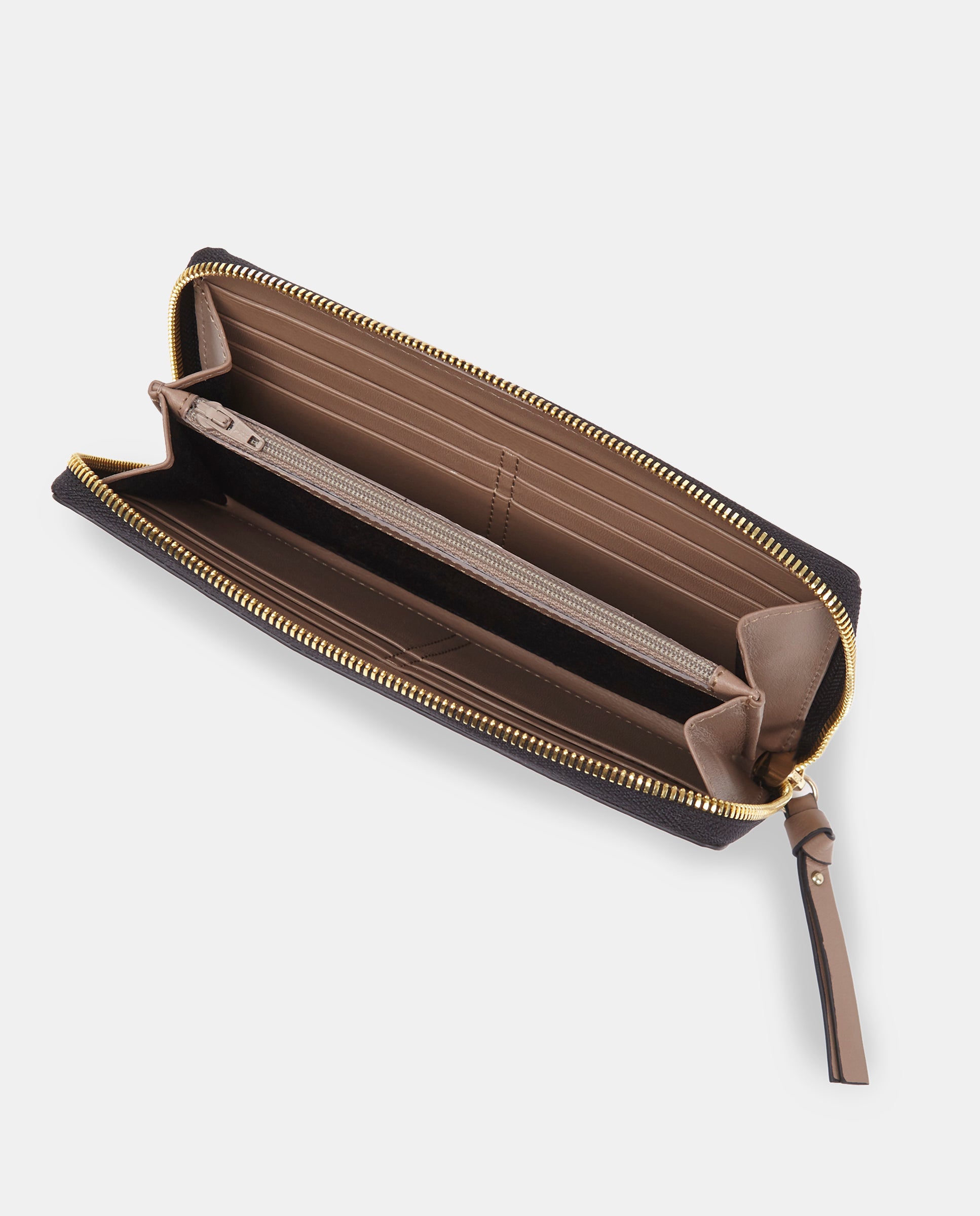 Con este monedero tendrás todo en una misma pieza. Cuenta con una cremallera metálica oro. Además, el compartimento principal tiene un interior de piel para que sea más duradero y con un fuelle de 3,5cm para que la capacidad de las monedas sea mayor.