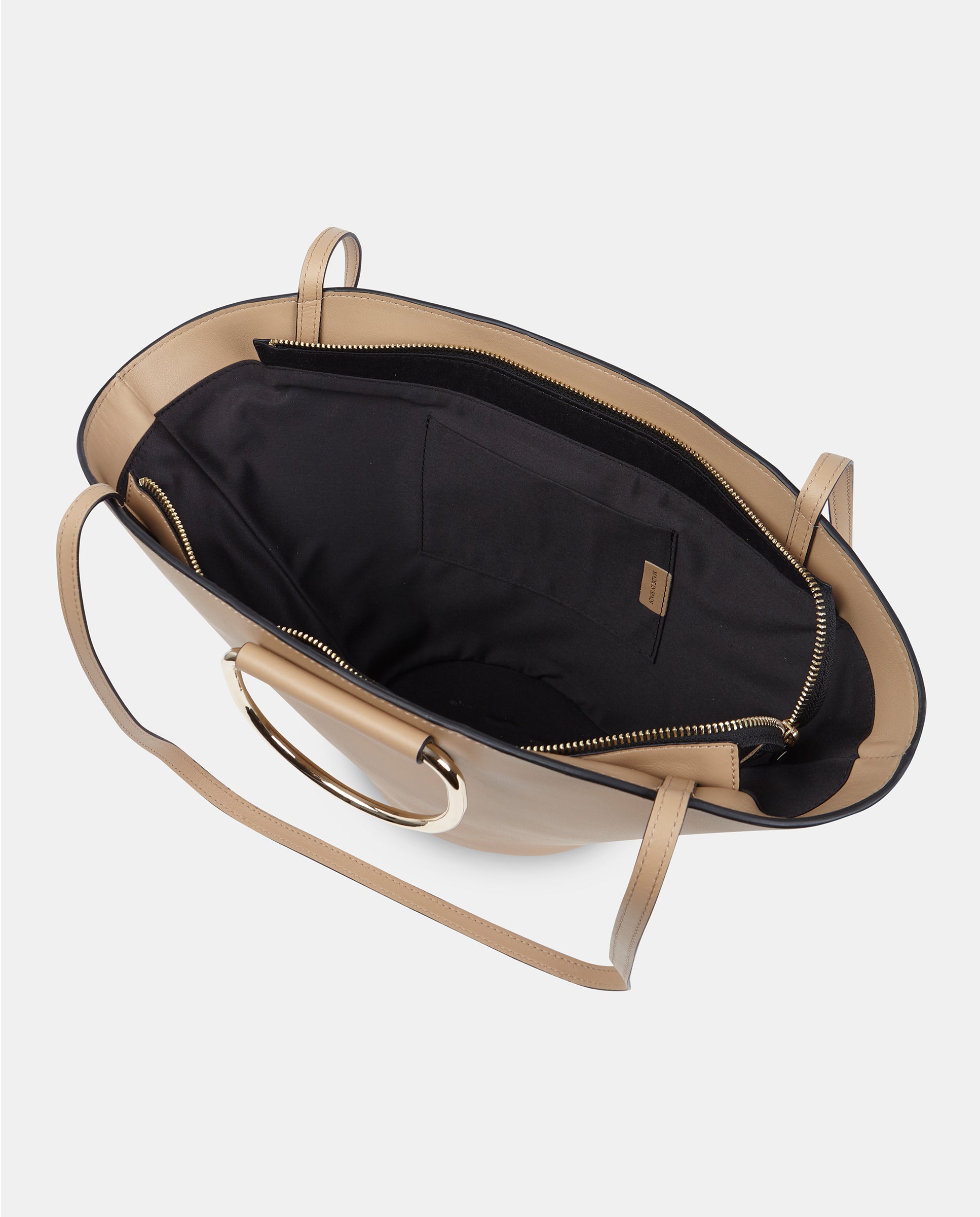 - Logo: grabado a fuego en oro claro.